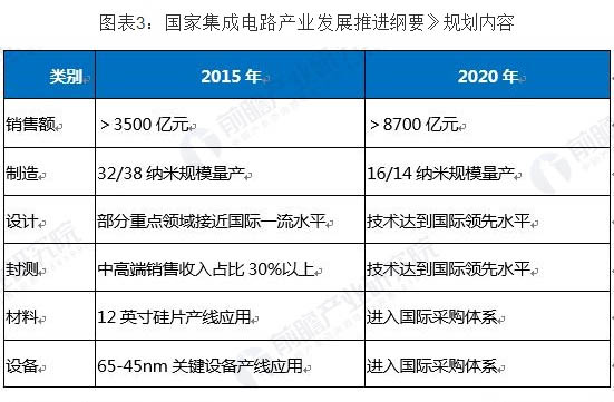 為推行芯片國產(chǎn)化,國家下達政策,對集成電路領(lǐng)域扶持力度極強。首先,國家制定了發(fā)展目標——2020年收入超過8700億元,實現(xiàn)16/14納米量產(chǎn),關(guān)鍵領(lǐng)域技術(shù)達到世界先進水平,材料和設(shè)備進入全球供應鏈。