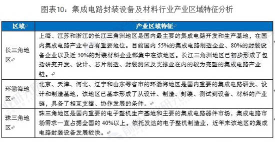 另外,從區(qū)域特點看,目前,中國集成電路封裝設(shè)備及材料市場產(chǎn)業(yè)集群化分布進一步顯現(xiàn),已初步形成以長三角、環(huán)渤海、珠三角三大核心區(qū)域聚集發(fā)展的產(chǎn)業(yè)空間格局,長江三角洲、京津環(huán)渤海灣、中西部和珠江三角洲地區(qū),占比分別為56.2%、14.6%、12.4%、12.4%;其他地區(qū)占比4.4%。具體情況如下: