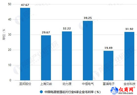目前,中國(guó)電源管理芯片行業(yè)企業(yè)毛利率水準(zhǔn)遠(yuǎn)高于其他行業(yè),高盈利能力吸引了潛在進(jìn)入者不斷涌入市場(chǎng)。據(jù)前瞻產(chǎn)業(yè)研究院不完全統(tǒng)計(jì),2019年上半年,就下列統(tǒng)計(jì)的6家企業(yè)毛利率數(shù)據(jù)來(lái)看,毛利率最高水平可達(dá)47.67%,而最低也有19.49%。