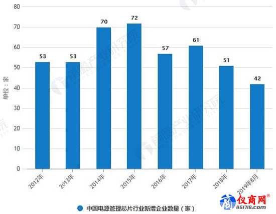 可見(jiàn),電源管理芯片誘人的市場(chǎng)商機(jī)加上進(jìn)入門檻低,吸引了不少中國(guó)芯片設(shè)計(jì)公司競(jìng)相投入,但卻因技術(shù)門檻不高而只能在低端市場(chǎng)惡性競(jìng)價(jià)。據(jù)前瞻產(chǎn)業(yè)研究院不完全匯總,目前中國(guó)電源管理芯片行業(yè)每年仍然在不斷涌入新進(jìn)入者,2012-2018年期間,平均每年新增企業(yè)數(shù)量約61家左右。截至2019年8月底,行業(yè)企業(yè)數(shù)量約1200家左右。