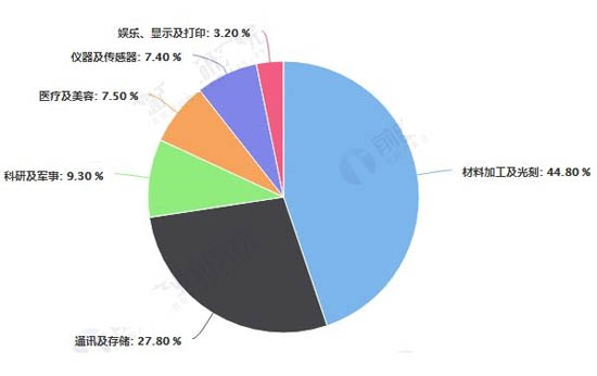 2018年全球激光器應(yīng)用領(lǐng)域占比統(tǒng)計情況