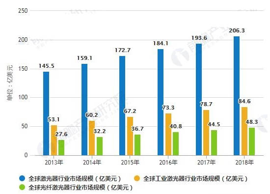 2013-2018年全球激光器行業(yè)市場規(guī)模統(tǒng)計及增長情況