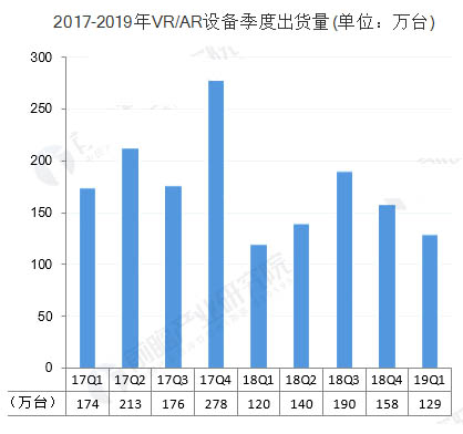 從整體VR/AR設備出貨量來看,根據(jù)IDC統(tǒng)計數(shù)據(jù),2018年,全球VR/AR設備出貨量為608萬臺,同比下降28%;2019年一季度,VR/AR設備出貨量為130萬臺,同比增長8%。