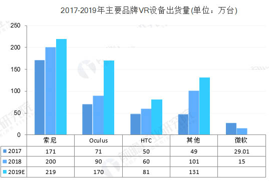 從原始銷售數(shù)據(jù)來看,索尼的PlayStation VR是最受歡迎的高端VR頭盔。根據(jù)Statista數(shù)據(jù),2018年索尼、Oculus(被Facebook于2014年以20億美元收購)、HTC VR出貨量分別為200萬臺、90萬臺和60萬臺,對應市場份額為43%、19%和13%,位列行業(yè)前三。