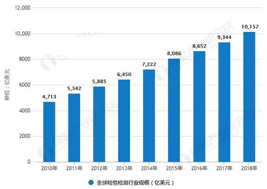 2010-2018年全球檢驗(yàn)檢測(cè)行業(yè)規(guī)模統(tǒng)計(jì)情況