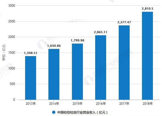 2013-2018年中國(guó)檢驗(yàn)檢測(cè)行業(yè)營(yíng)業(yè)收入統(tǒng)計(jì)情況