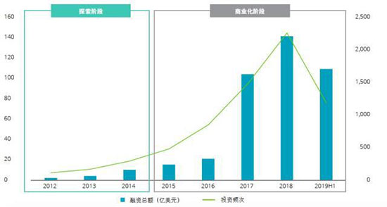 根據(jù)德勤報(bào)告,在過去5年間,全球人工智能領(lǐng)域投資出現(xiàn)快速增長。全球人工智能領(lǐng)域融資在2017年迎來全面爆發(fā)。據(jù)不完全統(tǒng)計(jì),2017年全球人工智能融資總額躍升至104億美元,并在2018年持續(xù)增加。截至2019年上半年全球人工智能領(lǐng)域共獲融資超過109億美元。