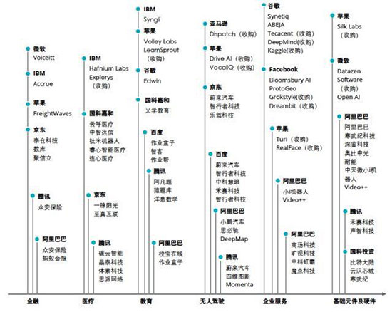 但是這些投資巨頭的投資偏好也不盡相同,阿里巴巴投資重點(diǎn)主要在安防和基礎(chǔ)元件,獲投的代表性公司包括商湯、曠視和寒武紀(jì)科技等。騰訊投資的重點(diǎn)主要集中在智能健康、教育、智能汽車等領(lǐng)域,代表性的公司包括蔚來汽車、碳云智能等企業(yè)。百度投資的重點(diǎn)主要在汽車、零售和智能家居等領(lǐng)域。京東投資重點(diǎn)聚集在汽車、金融和智能家居等領(lǐng)域。而依托中科院體系的國科系則在與芯片、醫(yī)療、教育等人工智能技術(shù)和應(yīng)用領(lǐng)域均有涉足。