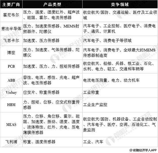 全球傳感器市場的主要廠商有GE傳感器、愛默生、西門子、博世、意法半導(dǎo)體、霍尼韋爾、ABB、日本橫河、歐姆龍、施耐德電氣、E+H等。在全球消費(fèi)類慣性傳感器(加速度計(jì)+陀螺儀)市場,意法半導(dǎo)體處于市場領(lǐng)導(dǎo)者的地位,占據(jù)四成左右的市場份。博世是全球最大的MEMS傳感器制造商。