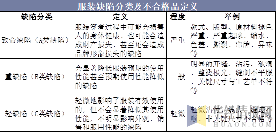 服裝缺陷分類及不合格品定義