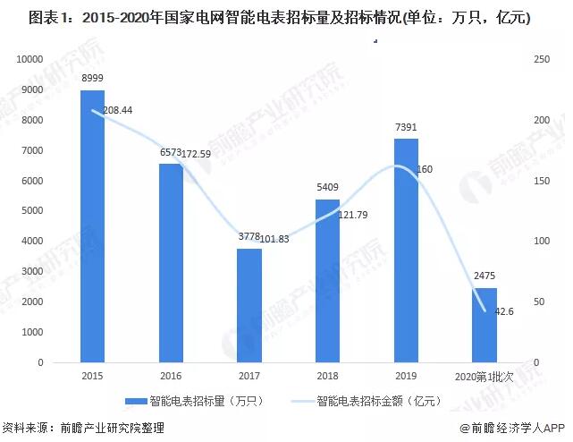 《中國智能電網(wǎng)計劃》發(fā)布后,我國電網(wǎng)自動化需求爆發(fā),作為智能電網(wǎng)“基石”的智能電表大規(guī)模招標啟動,以國網(wǎng)為例,2014年招標量達到9166萬只,招標量達到高點;2019年國家電網(wǎng)電表招標總量為7391萬只,同比增速為34.5%。2020年第一批次智能電表招標量達到2475萬只,其中2級單相智能電能表招標需求量達到2228萬只,1級三相智能電能表招標需求量達到215萬只。