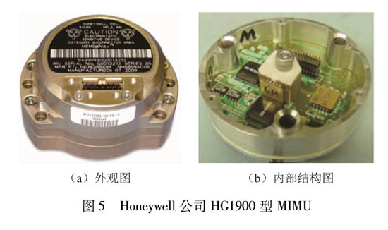 美國Honeywell公司在獲得了Draper實驗室振動陀螺和扭擺式加速度傳感器的技術(shù)授權(quán)的基礎(chǔ)上,制定了圍繞MEMS慣性傳感器展開小型化和超小型化IMU的發(fā)展計劃,主要應(yīng)用于武器系統(tǒng)制導(dǎo)中。其較成熟的產(chǎn)品包括精度較高的HG1900型MEMS慣性測量組合產(chǎn)品和HG1930抗高過載MEMS慣性測量組合產(chǎn)品,如圖5所示。其中HG1930由三個MEMS加速度傳感器和三個MEMS陀螺儀組裝。三個加速度傳感器和三個陀螺儀均為單軸模塊,和電源模塊與信號處理模塊共同完成六軸測量。陀螺的量程最大可達7200(°)/h,零偏重復(fù)性20(°)/h,加速度傳感器最大量程達到85g,零偏重復(fù)性5mg,整個系統(tǒng)功耗小于3W。