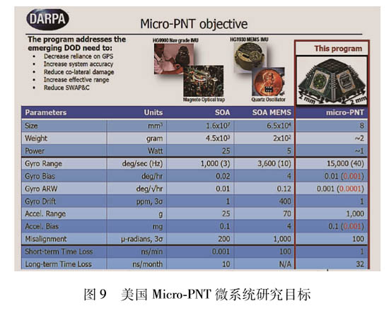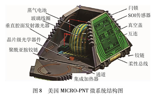DARPA在2010年1月啟動了“定位、導(dǎo)航和授時微系統(tǒng)技術(shù)”(Micro-PNT)項目的研發(fā)工作,如圖8所示,該研究旨在利用微系統(tǒng)技術(shù)實現(xiàn)微型慣性導(dǎo)航系統(tǒng)。