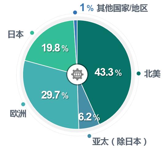 從企業(yè)全球辦事處區(qū)域分布來看,主要集中在亞太地區(qū),由此可以看出各企業(yè)對亞太市場的重視,其中中國企業(yè)分支機(jī)構(gòu)數(shù)量占亞太地區(qū)的90%以上。從國家分布來看,亞太地區(qū)主要集中于中國(51%)、日本、印度,北美主要集中在美國(50%)和墨西哥,南美主要是巴西,歐洲則以德國(23%)、法國、英國、西班牙為主。從國內(nèi)視角來看,華東地區(qū)企業(yè)主要集中在上海、蘇州等地,中南地區(qū)主要以深圳、廣州為主,華北地區(qū)主要以北京、天津?yàn)橹?,西南主要以成都、重慶為主。從城市分布來看,上海、北京、深圳占據(jù)了前三名,占比分別達(dá)到10%、8%和7%。