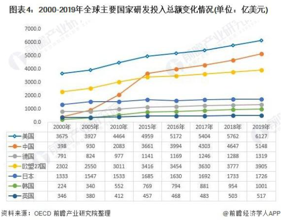 全球科技競爭愈演愈烈,科技創(chuàng)新已經(jīng)成為各國提高綜合國力的關(guān)鍵支撐,科學(xué)儀器作為一個國家科技進(jìn)步的基石,已經(jīng)被美國、日本、韓國、中國、歐盟等多個國家提到戰(zhàn)略發(fā)展的高度。根據(jù) OECD 2021 年 3 月 18 日公布的數(shù)據(jù)顯示,2019 年經(jīng)合組織研發(fā)支出增長 4%,研發(fā)強(qiáng)度 ( 國內(nèi)研發(fā)支出占 GDP 的比重 ) 則從 2018 年的 2.4% 增長至近 2.5%。