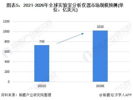 因此,在全球科技快速發(fā)展的推動下,全球科學(xué)儀器行業(yè)市場規(guī)模將持續(xù)增長,預(yù)計到 2026 年全球?qū)嶒炇曳治鰞x器市場規(guī)模有望增加至 1020 億美元,2021-2026 年復(fù)合增長率為 6.9%。