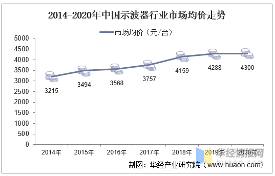 近年來,隨著我國示波器產業(yè)化的快速發(fā)展以及產品檔次結構的提升,國內產品銷售均價從2014年的3215元/臺上漲至2020年的4300元/臺。