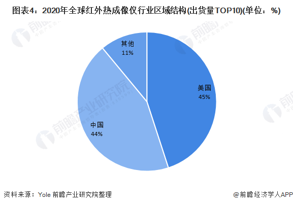 圖表4:2020年全球紅外熱成像儀行業(yè)區(qū)域結(jié)構(gòu)(出貨量TOP10)(單位:%)