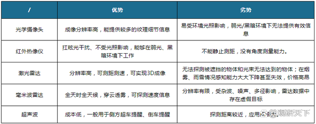 常見(jiàn)車(chē)載輔助駕駛傳感器功能對(duì)比