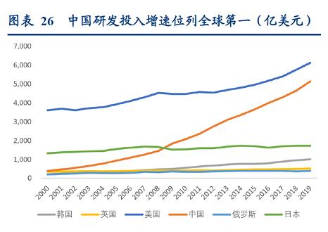 2021 年研究與試驗發(fā)展(R&D)經(jīng)費支出27,864 億元,比上年增長14.2%,與國內(nèi)生產(chǎn)總值之比為2.44%。目前中國R&D 經(jīng)費總額位列全球第二,僅次于美國。