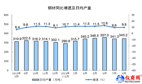 分行業(yè)看,8月份,41個(gè)大類(lèi)行業(yè)中有32個(gè)行業(yè)增加值保持同比增長(zhǎng)。農(nóng)副食品加工業(yè)增加值與上年同月持平,紡織業(yè)增長(zhǎng)0.1%,化學(xué)原料和化學(xué)制品制造業(yè)增長(zhǎng)1.2%,非金屬礦物制品業(yè)增長(zhǎng)8.1%,黑色金屬冶煉和壓延加工業(yè)增長(zhǎng)10.4%,有色金屬冶煉和壓延加工業(yè)增長(zhǎng)8.5%,通用設(shè)備制造業(yè)與上年同月持平,專(zhuān)用設(shè)備制造業(yè)增長(zhǎng)3.3%,汽車(chē)制造業(yè)增長(zhǎng)4.3%,鐵路、船舶、航空航天和其他運(yùn)輸設(shè)備制造業(yè)增長(zhǎng)7.8%,電氣機(jī)械和器材制造業(yè)增長(zhǎng)10.0%,計(jì)算機(jī)、通信和其他電子設(shè)備制造業(yè)增長(zhǎng)4.7%,電力、熱力生產(chǎn)和供應(yīng)業(yè)增長(zhǎng)5.1%。