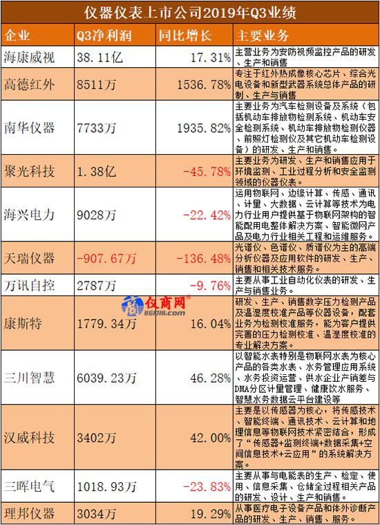 以下是儀器儀表門(mén)戶(hù)網(wǎng)站儀商網(wǎng)整理的儀器儀表上市公司2019年Q3業(yè)績(jī)表。