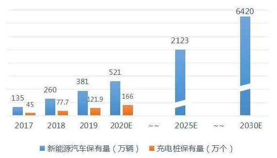 工信部于2019年末發(fā)布的《新能源汽車產(chǎn)業(yè)發(fā)展規(guī)劃(2021~2035)》征求意見稿指出,計(jì)劃到2025年,新能源汽車銷量占比達(dá)到新車銷量的25%。孫會(huì)峰預(yù)計(jì),到2030年,中國新能源汽車保有量將達(dá)到6420萬輛,根據(jù)車樁比1:1的建設(shè)目標(biāo),未來10年,中國充電樁建設(shè)仍然存在6300萬的缺口,預(yù)計(jì)將形成10,253億的充電樁基礎(chǔ)設(shè)施建設(shè)市場。
