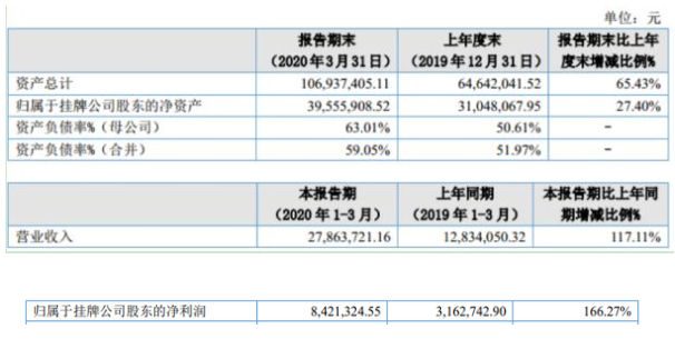營業(yè)收入增長117.11%、歸屬于掛牌公司股東的凈利潤增長166.27%、歸屬于掛牌公司股東的扣除非經(jīng)常性損益的凈利潤增長141.64%,主要系公司在1月專為疫情研發(fā)出雙光AI人臉檢測體溫?zé)嵯駜x對(duì)營收帶來增長,同時(shí)公司生產(chǎn)產(chǎn)能提升,成本降低,使得凈利潤增長。