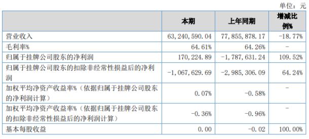 截止2020年6月30日,報(bào)告期末公司總資產(chǎn)為358,566,137.21元,較上年期末下滑5.49%;歸屬于掛牌公司股東的凈資產(chǎn)為291,383,632.69元,較上年期末增長(zhǎng)0.07%。
