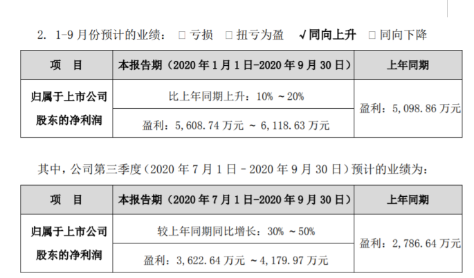 近日,萬訊自控發(fā)布2020年前三季度業(yè)績預(yù)告,2020年1月1日–2020年9月30日歸屬于上市公司股東的凈利潤5,608.74萬元~6,118.63萬元,比上年同期增長10%~20%;其中第三季度盈利3,622.64萬元~4,179.97萬元,比上年同期增長30%~50%。