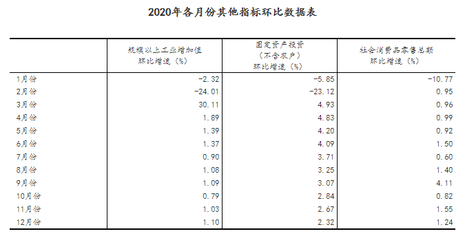 2020年各月份其他指標環(huán)比數(shù)據(jù)表