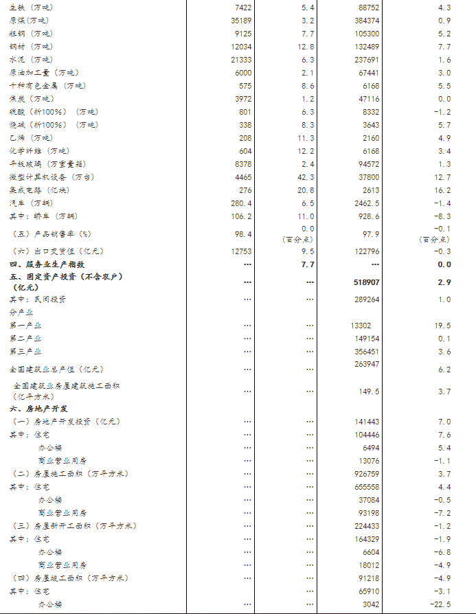 (1)國內(nèi)生產(chǎn)總值、規(guī)模以上工業(yè)增加值及其分類項目增長速度按可比價計算,為實際增長速度;其他指標除特殊說明外,按現(xiàn)價計算,為名義增長速度。