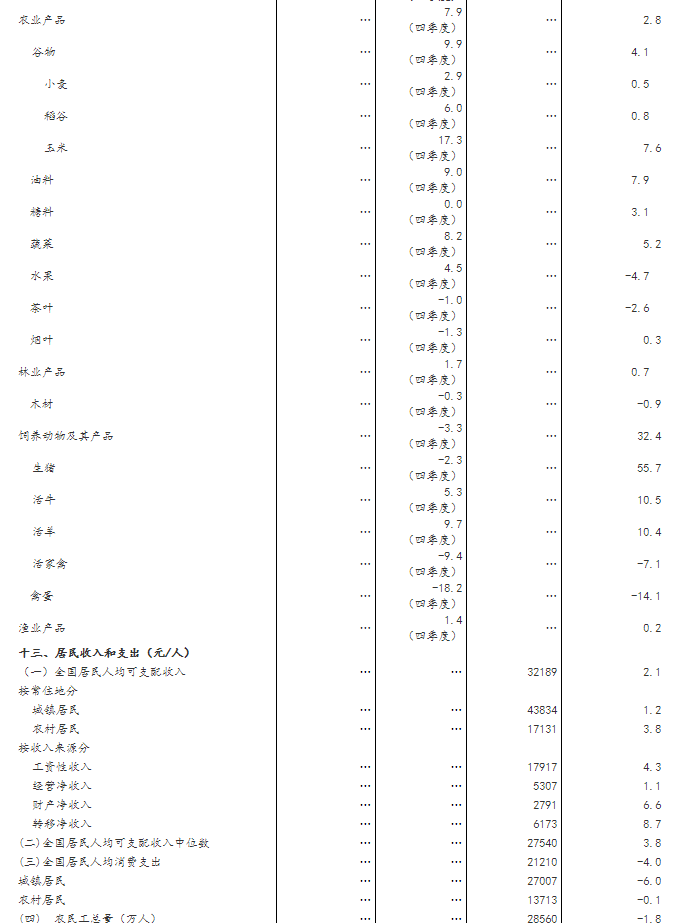 1.國內(nèi)生產(chǎn)總值、規(guī)模以上工業(yè)增加值及其分類項目增長速度均按可比價計算;全國及分城鄉(xiāng)居民人均可支配收入和人均消費支出增速為實際增長速度,全國居民人均可支配收入分項增速、中位數(shù)增速為名義增速;其他指標增長速度均按現(xiàn)價計算。