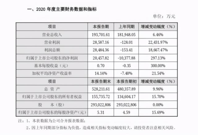 2019年漢威科技實(shí)現(xiàn)的歸屬于上市公司股東的凈利潤(rùn)為-1.04億元。漢威科技2020年度業(yè)績(jī)報(bào)告顯示,該公司實(shí)現(xiàn)營(yíng)業(yè)收入為19.41億元,同比增長(zhǎng)6.69%;實(shí)現(xiàn)歸屬于上市公司股東的凈利潤(rùn)2.06億元,同比增長(zhǎng)298.05%,實(shí)現(xiàn)扭虧。