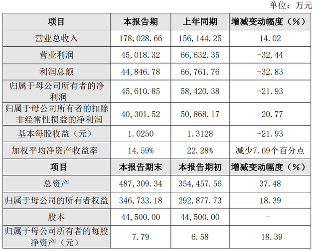 此外,營業(yè)利潤同比減少32.44%,利潤總額同比減少32.83%,主要原因有:報告期內(nèi),公司銷售產(chǎn)品結構變化等因素使毛利率下降;公司持續(xù)加大新業(yè)務的研發(fā)投入和新產(chǎn)品開發(fā),加強開拓市場,使期間費用大幅增長;此外,公司取得的理財收益和股權投資收益較去年同期有所減少。