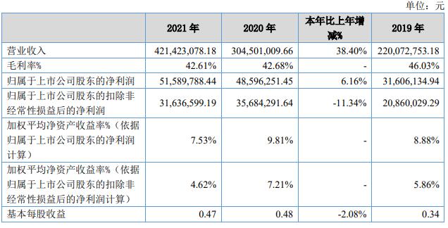 4月11日,北交所上市公司創(chuàng)遠(yuǎn)儀器發(fā)布2021年全年業(yè)績(jī)報(bào)告。報(bào)告顯示,2021年公司實(shí)現(xiàn)營(yíng)業(yè)收入4.21億元,同比增長(zhǎng)38.40%;實(shí)現(xiàn)歸屬于上市公司股東的凈利潤(rùn)為5158.98萬(wàn)元,同比增長(zhǎng)6.16%,基本每股收益為0.47元。