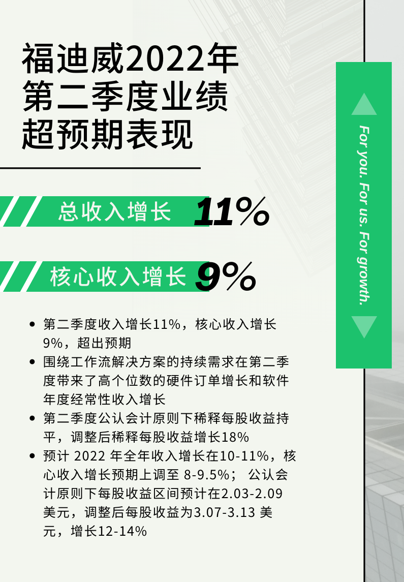 福迪威總裁兼首席執(zhí)行官James A. Lico表示:“各項(xiàng)業(yè)務(wù)堅(jiān)實(shí)的基礎(chǔ)和執(zhí)行力讓二季度無論是收入還是調(diào)整后的每股收益增長均取得了超預(yù)期的表現(xiàn),并且實(shí)現(xiàn)了出色的利潤率擴(kuò)張和現(xiàn)金流。此外,我們看到訂單和軟件年度經(jīng)常性收入增長依然強(qiáng)勁,體現(xiàn)了我們?cè)陉P(guān)鍵工作流解決方案領(lǐng)域的優(yōu)勢和富有韌性的多樣化產(chǎn)品組合。對(duì)Fortive Business System(FBS)福迪威業(yè)務(wù)系統(tǒng)的嚴(yán)謹(jǐn)部署,讓我們能夠應(yīng)對(duì)疫情,減少挑戰(zhàn)帶來的影響,不僅取得了出色表現(xiàn),也增強(qiáng)了對(duì)2022年全年前景的信心?!?