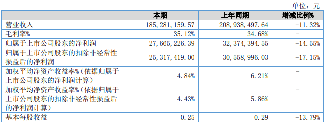 近日,北交所上市公司奧迪威發(fā)布2022年半年報(bào),報(bào)告期內(nèi)公司實(shí)現(xiàn)營業(yè)收入1.85億元,同比下降11.32%,歸屬于上市公司股東的凈利潤為2766.52萬元,同比下降14.55%,每股收益為0.25元。