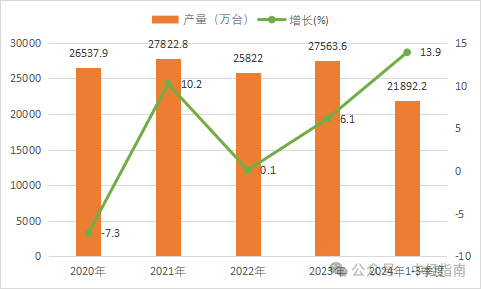 圖表:2020-2024年1-3季度中國電工儀器儀表產(chǎn)量統(tǒng)計及增長率