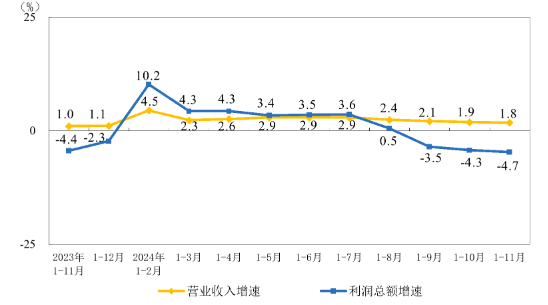 11月份,規(guī)模以上工業(yè)企業(yè)利潤(rùn)同比下降7.3%。