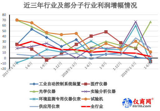 利潤(rùn)總額增幅低于營(yíng)收增幅4.7個(gè)百分點(diǎn),其中:光學(xué)儀器利潤(rùn)增幅高于營(yíng)收增幅20多個(gè)百分點(diǎn),衡器、地質(zhì)儀器、供應(yīng)用儀表的利潤(rùn)增幅亦遠(yuǎn)高于營(yíng)收增幅,實(shí)驗(yàn)分析利潤(rùn)增幅基本穩(wěn)定;而醫(yī)療儀器、汽車儀表、環(huán)境監(jiān)測(cè)等幾個(gè)分行業(yè)利潤(rùn)增幅遠(yuǎn)低于營(yíng)收增幅,自動(dòng)化儀表行業(yè)的利潤(rùn)增幅僅為-1.58%;行業(yè)增產(chǎn)不增收或增收不增利的情況加劇,盈利能力提升壓力很大。