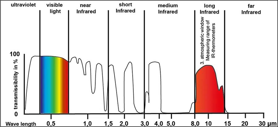 大氣窗口被定義為電磁輻射頻譜的波長間隔(如可見光、紅外光),對此間隔空氣在很大程度上是透明的。紅外傳感器在進行紅外測量時,利用8微米到14微米這段波長的大氣窗口,將不會受到空氣中水蒸氣和二氧化碳氣體的影響。