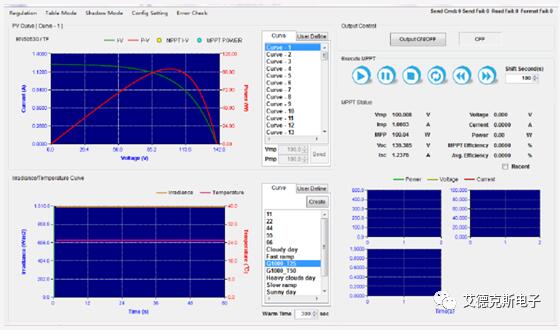 ITECH推出的SAS1000太陽(yáng)能電池矩陣仿真軟件,搭配高速高性能直流電源IT6000C,IT-M3900CSAS及IT-M3600,可以精確地仿真太陽(yáng)電池矩陣的I-V曲線,具有測(cè)量精準(zhǔn)、穩(wěn)定性高、響應(yīng)速度快等特性,內(nèi)建EN50530、Sandia、NB/T32004、CGC/GF004、CGC/GF035的SAS模型,用戶簡(jiǎn)單設(shè)定測(cè)試法規(guī)、材料、Vmp、Pmp等參數(shù)后,即可模擬I-V曲線輸出并生成符合法規(guī)的報(bào)表,用于測(cè)試光伏逆變器的靜態(tài)&動(dòng)態(tài)最大功率追蹤效能。
