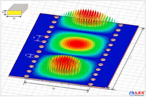 圖2 SIW的結(jié)構(gòu)與場(chǎng)分布