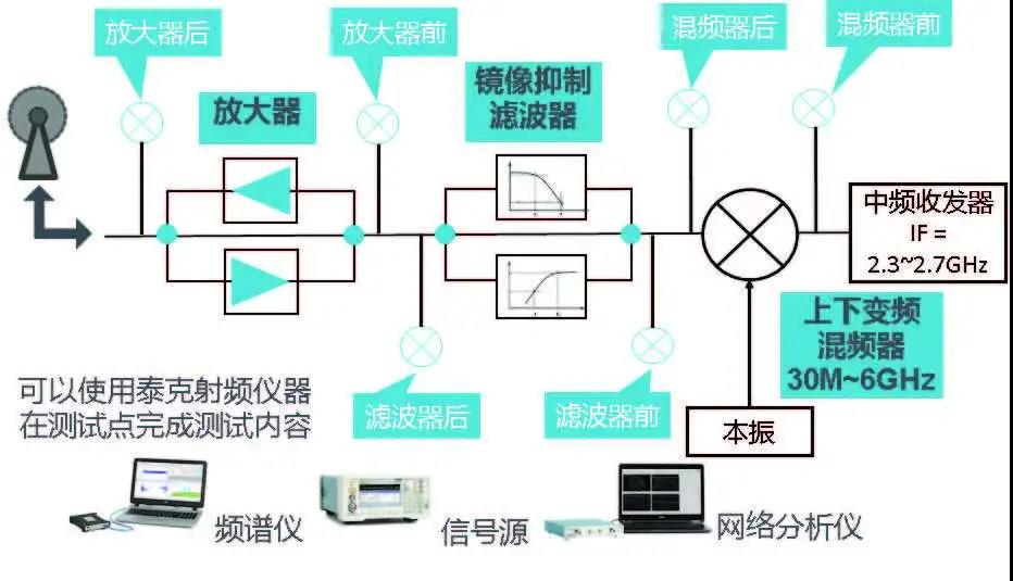 射頻信號(hào)測(cè)試點(diǎn):混頻器前后,濾波器前后,放大