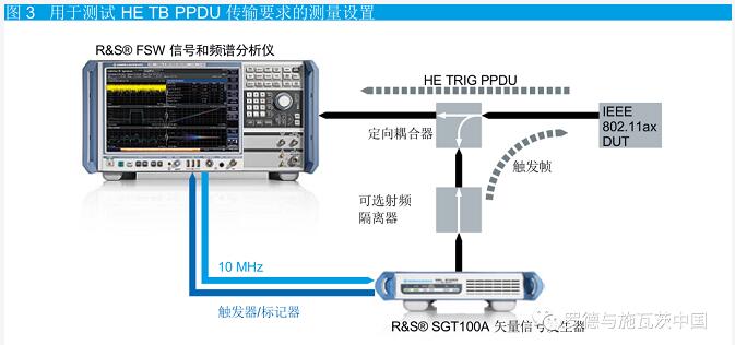 羅德與施瓦茨(以下簡稱“R&S”公司)信號發(fā)生器和頻譜分析儀可用于測試 IEEE 802.11ax 站點上行鏈路準確性。這一方案可支持測量 HE TB PPDU 傳輸?shù)臍堄噍d波頻率誤差和定時準確性等測試項。