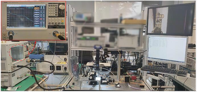 (四)測(cè)試的案例效果:利用自動(dòng)夾具移除功能,光波元件分析儀能夠準(zhǔn)確測(cè)量得到高頻探針的參數(shù)信息,在進(jìn)行電光芯片或光電芯片測(cè)試時(shí),消除探針帶來的測(cè)量誤差,進(jìn)而高精度地表征芯片的S參數(shù),如下圖所示(基于6433光波元件分析儀實(shí)現(xiàn))成功完成了光芯片在片測(cè)試。
