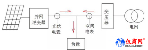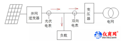從電路原理上講,電流都是從電壓高的地方流向電壓低的地方,在同一個時刻,電流的方向是唯一,就是說,電流在同一個點不能同時既流出又流入。我們以用戶側(cè)電表為節(jié)點,在同一時刻,電流只有一個方向,要么是光伏電流向電網(wǎng),要么是電網(wǎng)的電流向負載。所以不存在同一時刻光伏電送入電網(wǎng),負載從電網(wǎng)取電的情況。