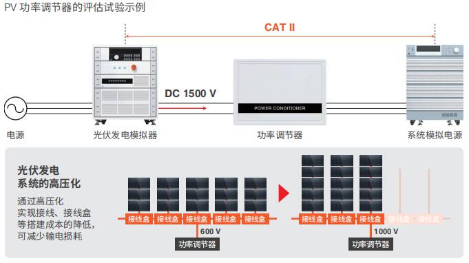 為了減少可再生能源的發(fā)電系統(tǒng)的設(shè)備搭建成本及輸送電能的損耗,需要高壓化。對(duì)于發(fā)電系統(tǒng)的評(píng)估需要可以對(duì)應(yīng)高電壓的測量儀器。