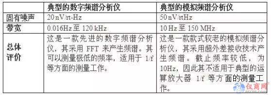 當(dāng)使用(或選擇)頻譜分析儀時(shí),我們需要考慮的主要技術(shù)規(guī)范就是固有噪聲和帶寬。圖1.12 中的表格列出了兩款不同頻譜分析儀的部分技術(shù)規(guī)范。